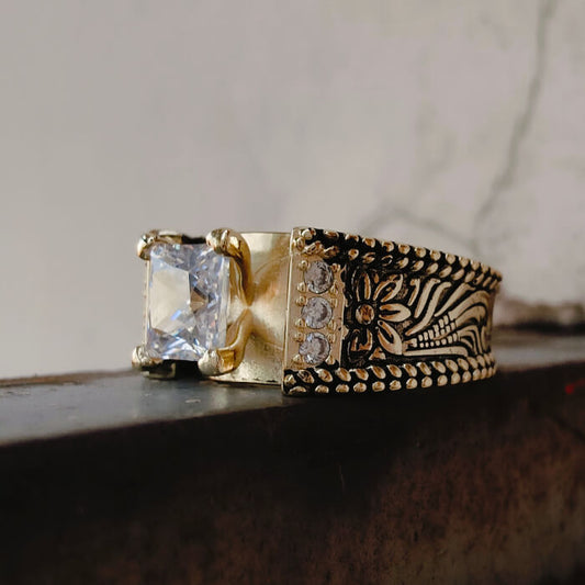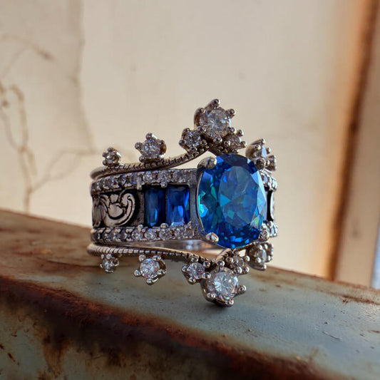 3PC Crown Ring Set – Square Cut Engagement Ring with Vintage Western Detailing