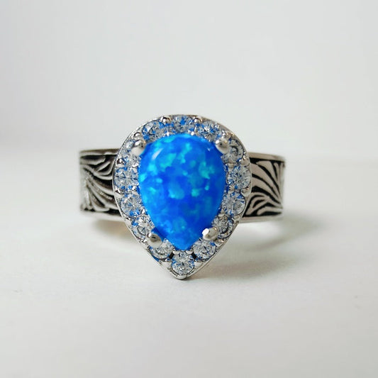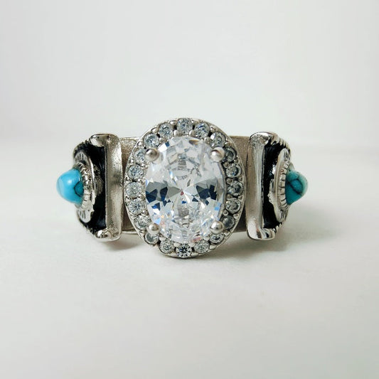 Women Flower Square Diamond Western Turquoise Wedding Ring