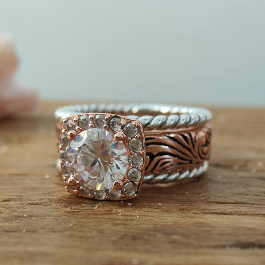 3pc Rose Gold Vintage Flower Western Engagement Ring for her