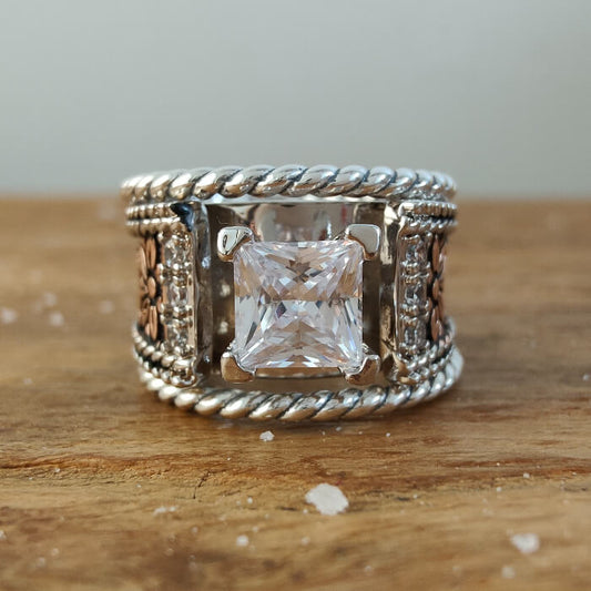 3pc Sterling Silver Retro Flower Square Moissanite Western Promise Rings
