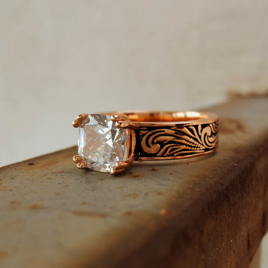 Rose Gold Diamond Wide Band Western Style Wedding Rings