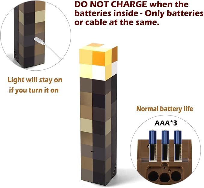 ✨Upgraded Pixel Torch Lamp · USB Powered · Handheld & Wall-Mount · Gamer Decor & Party Light