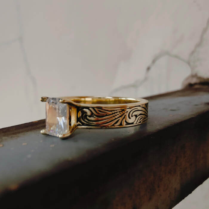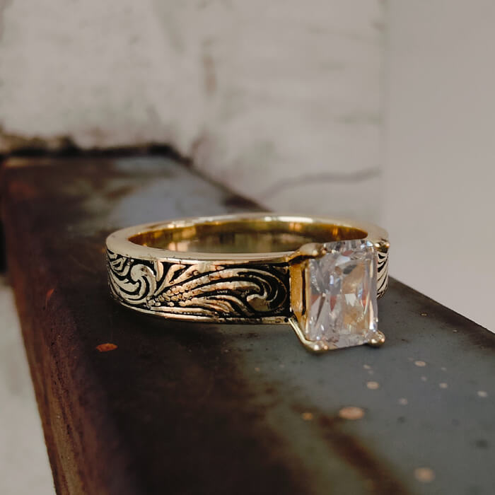 14K Gold Women Emerald Diamond Western Engagement Rings