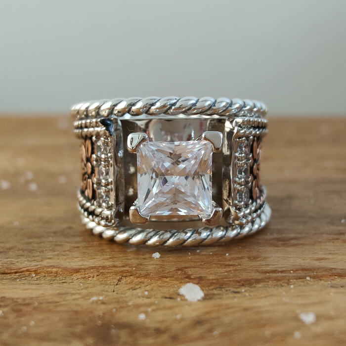 3pc Sterling Silver Twist Band Flower Western Engagement Rings