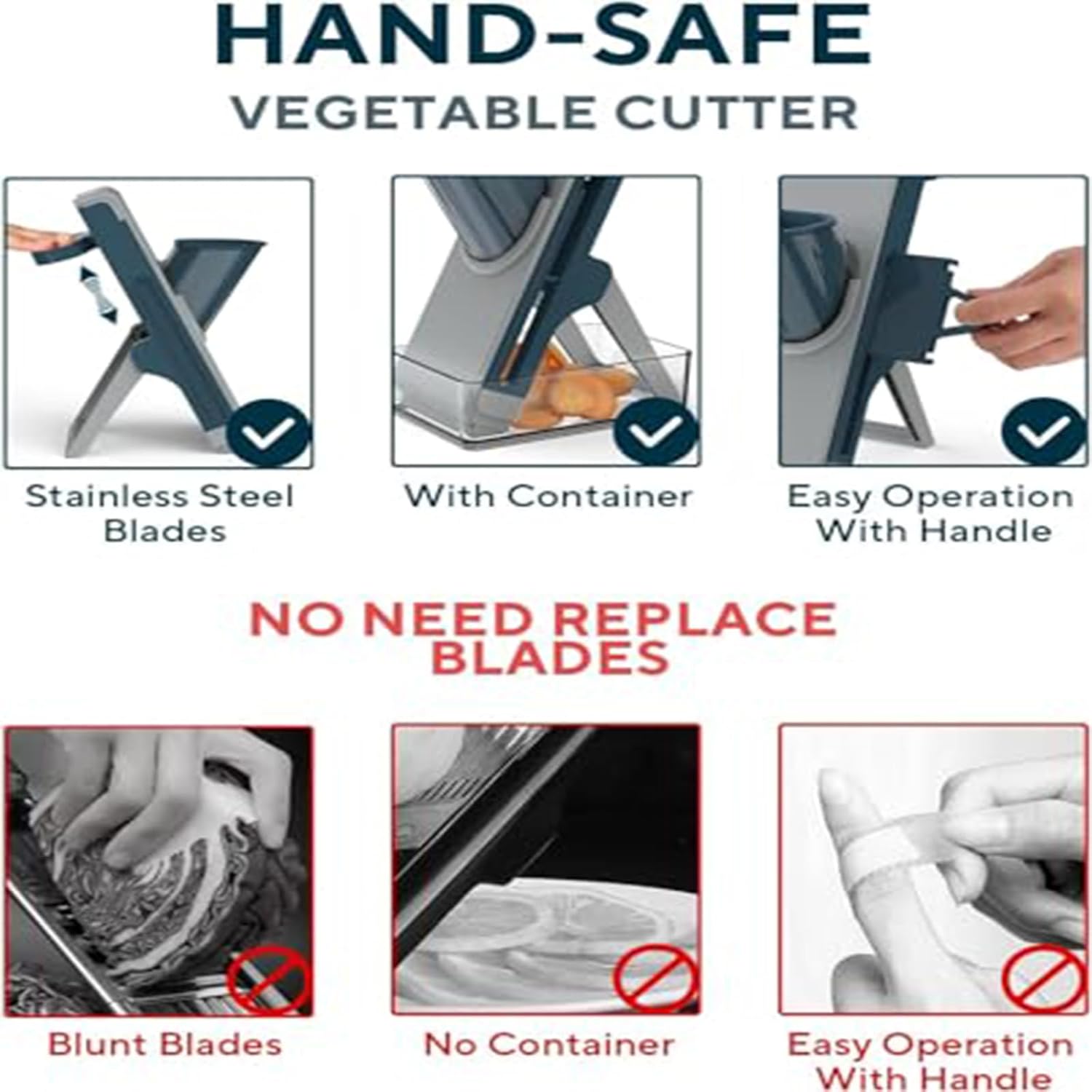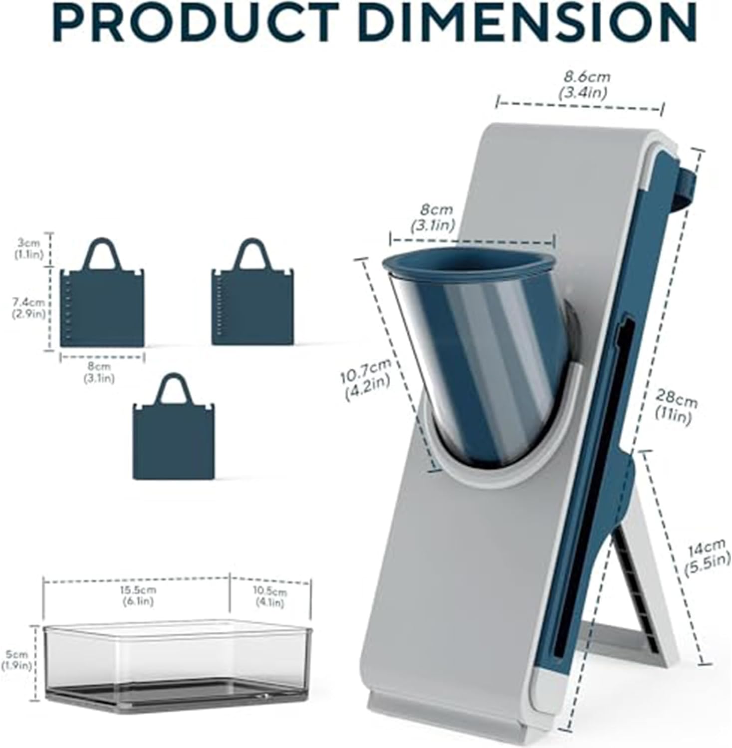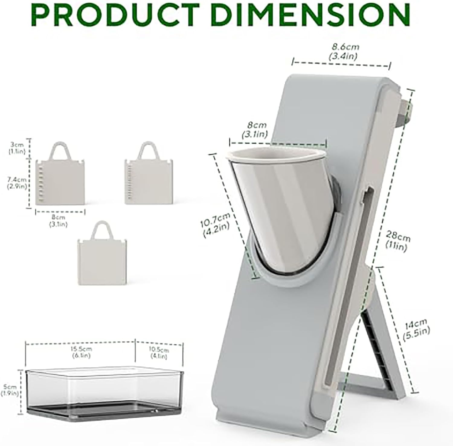 - 【Safety and High Quality】Our mandoline slicer for the kitchen has a shell made of eco-friendly ABS. The built-in stainless steel blade is strong and durable. You don't need to touch the blade, offering better protection for hand safety. Our vegetable chopper's non-slip silicone base and tripod design make it more stable.