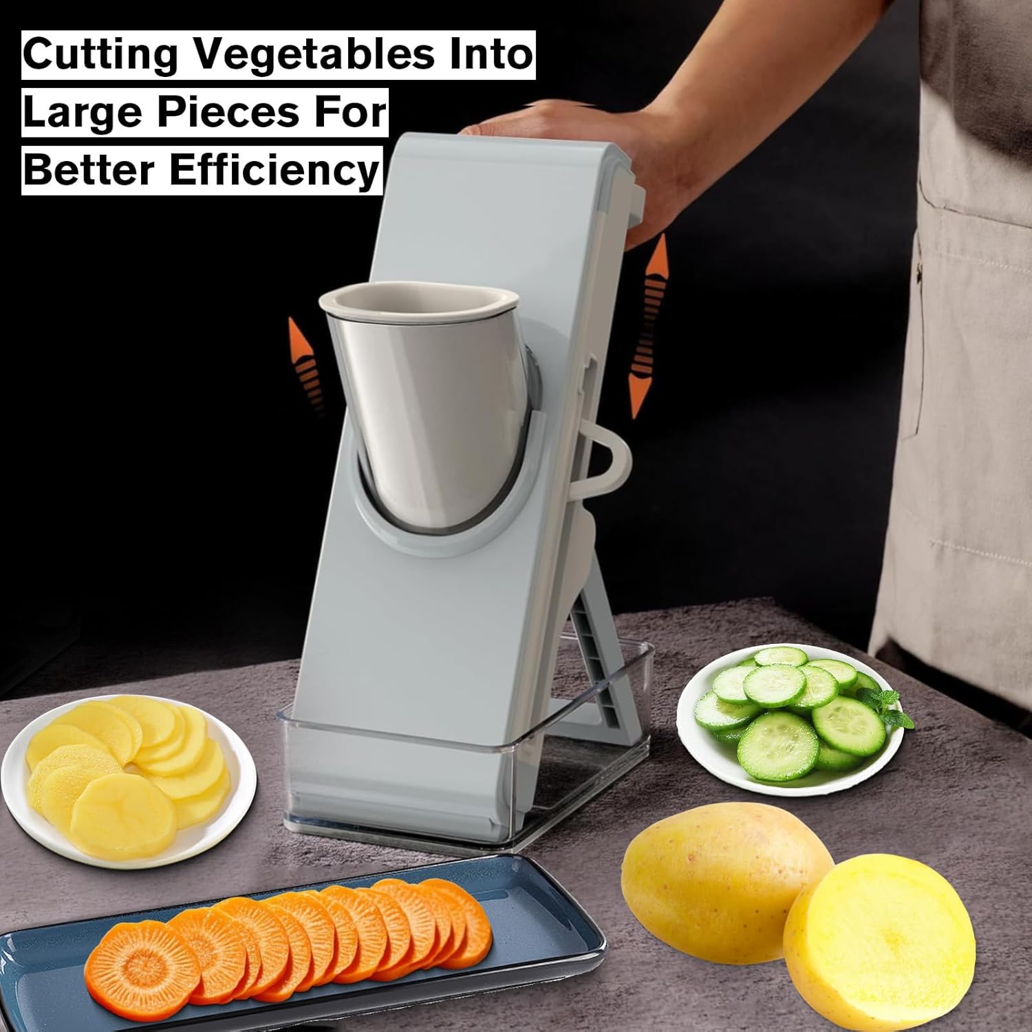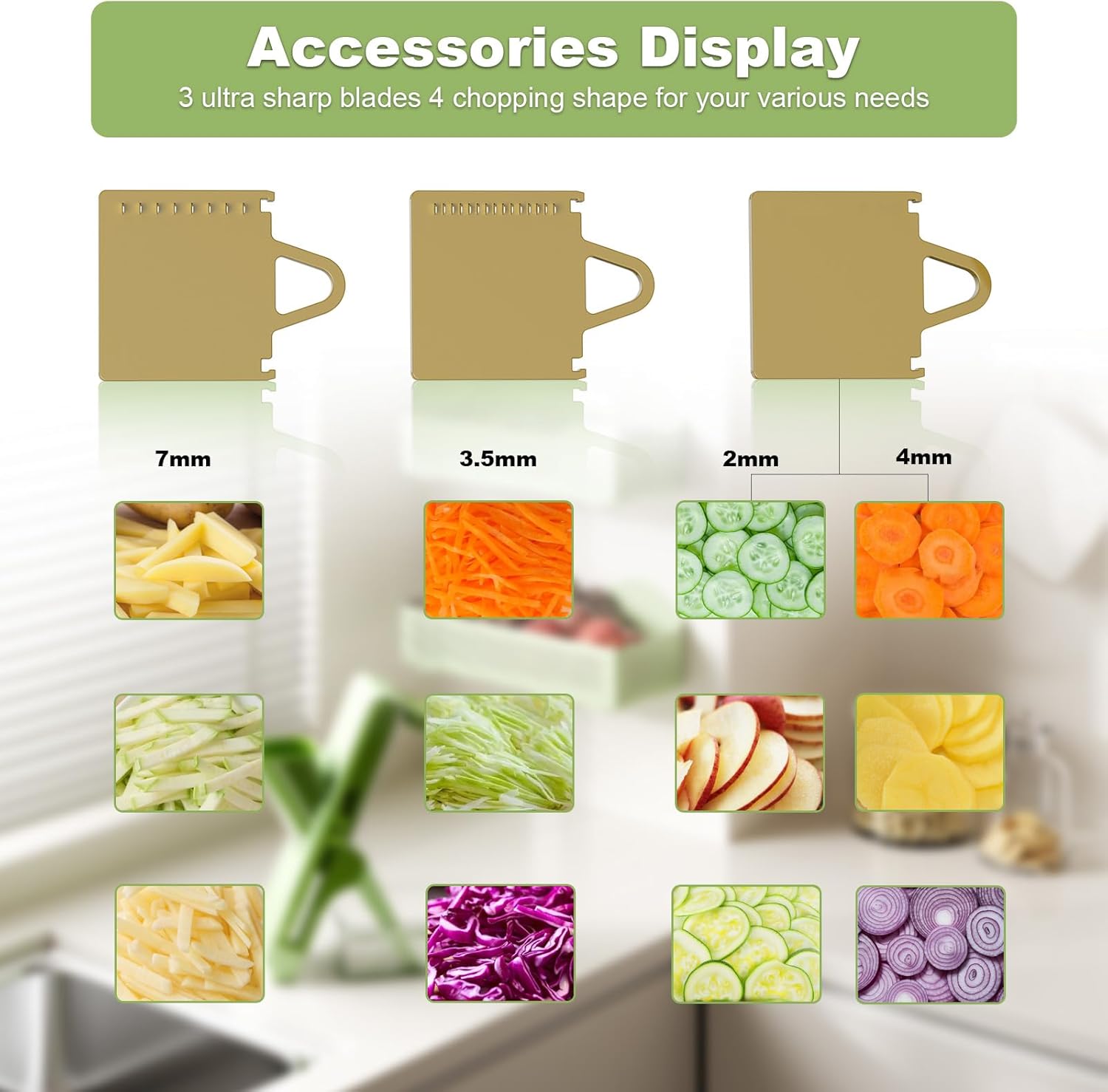 - 【More Efficiency & Easy to Use】Our mandoline chopper adopts a large diameter, which can chop more food at a time, slice quickly and evenly, and the vegetable slicer automatically rebounds after being pressed, which is more labor-saving and time-saving than typical slicers. Our mandoline slicer makes meal prep a breeze by being super efficient.