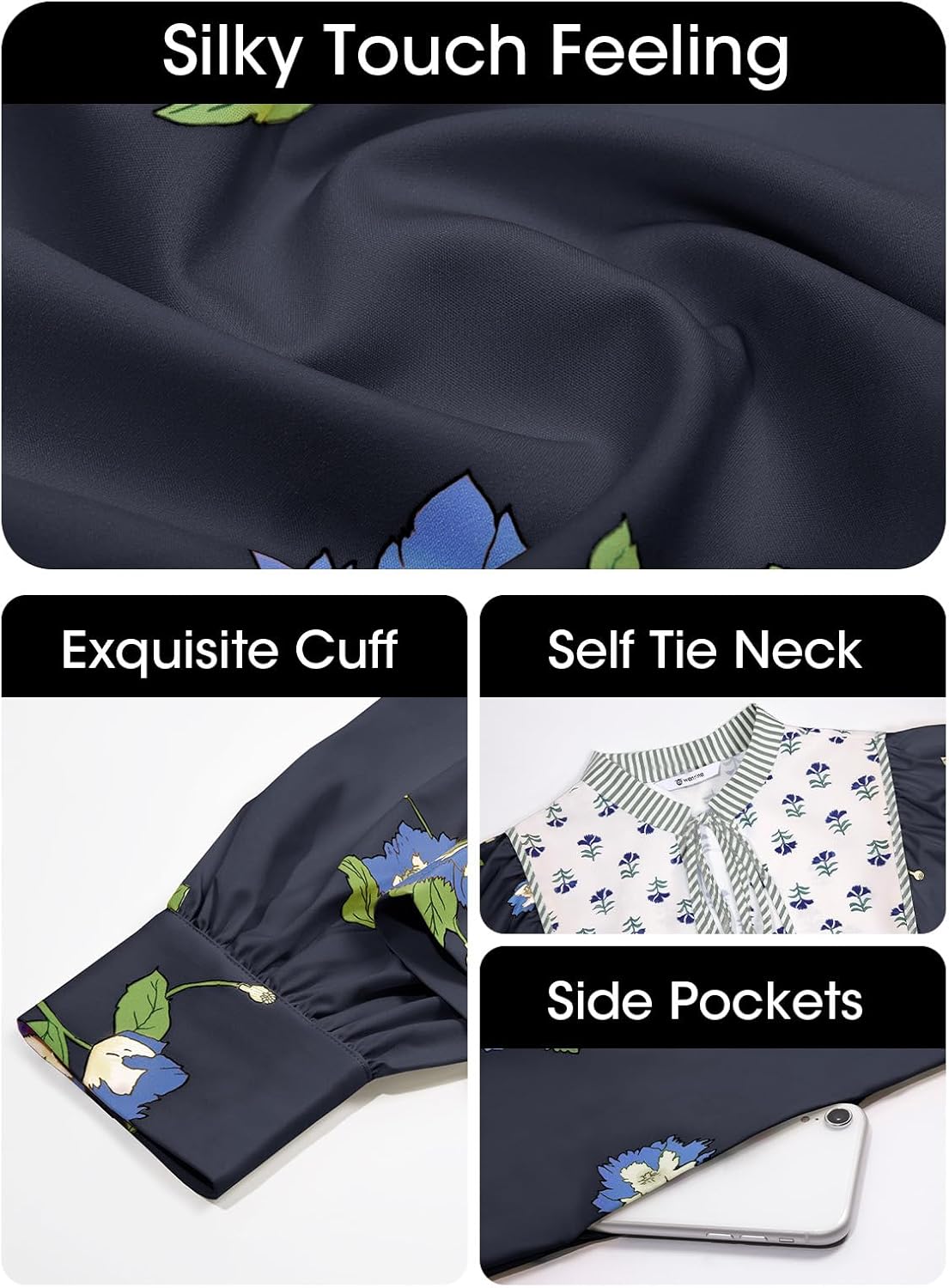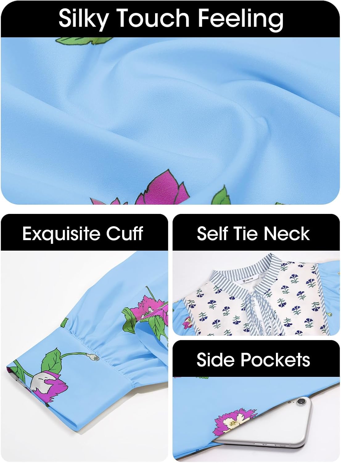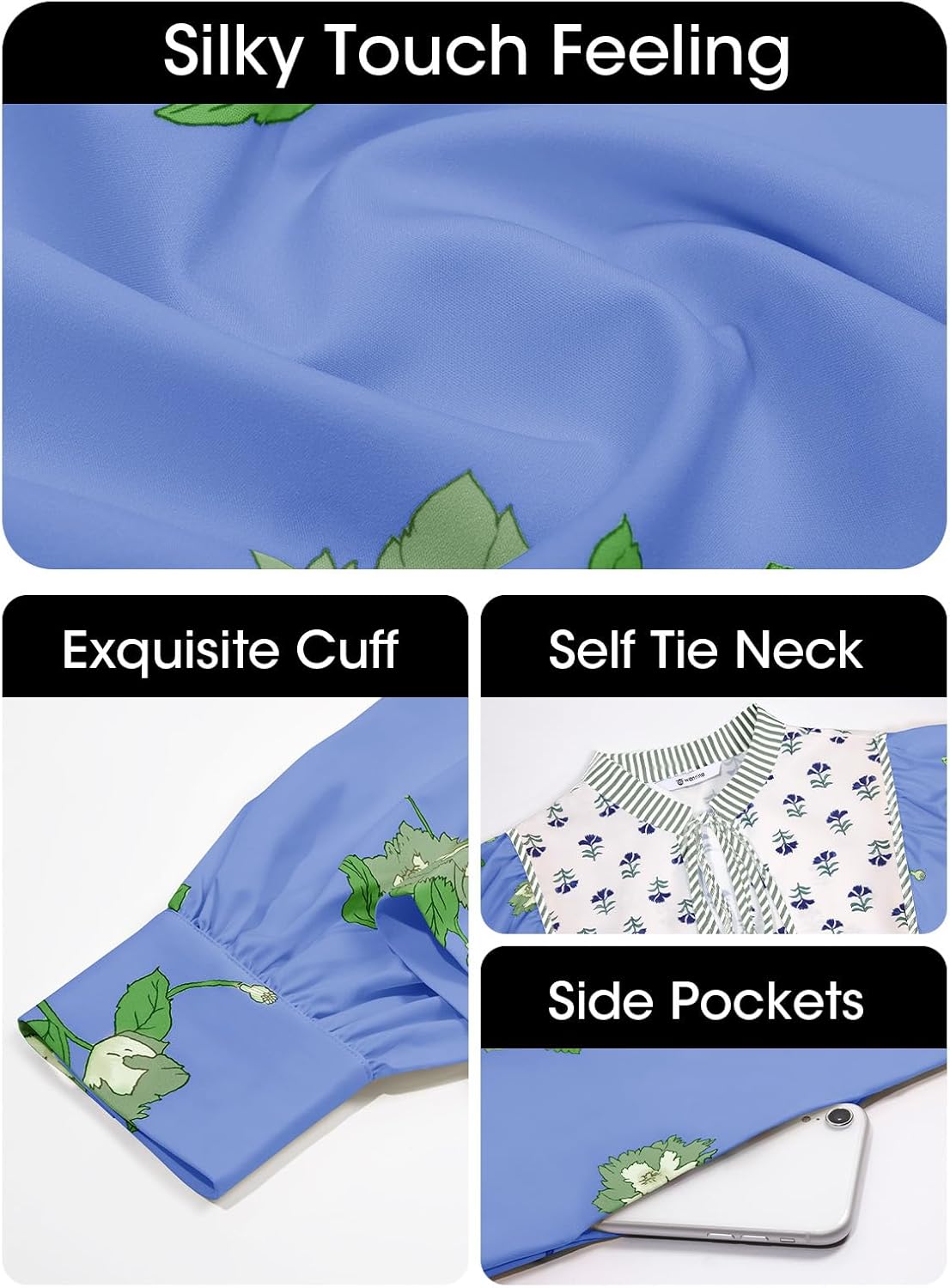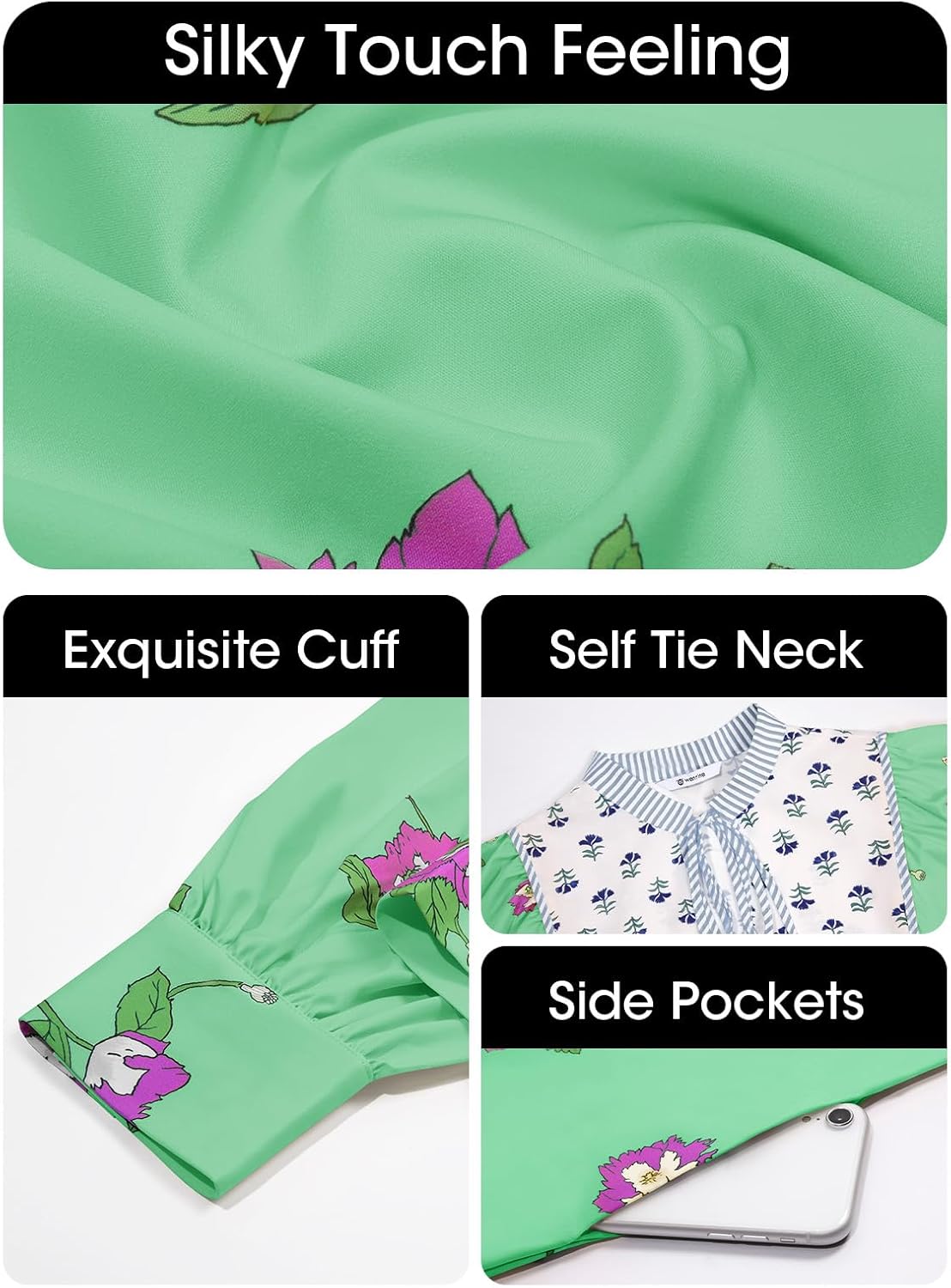 - Design: The floral and contrast color design breaks the monotony and adds a sense of layering; the puff long sleeve and v neck add a sense of sophistication; the cuff buttons are adjustable; the loose design is comfortable to wear