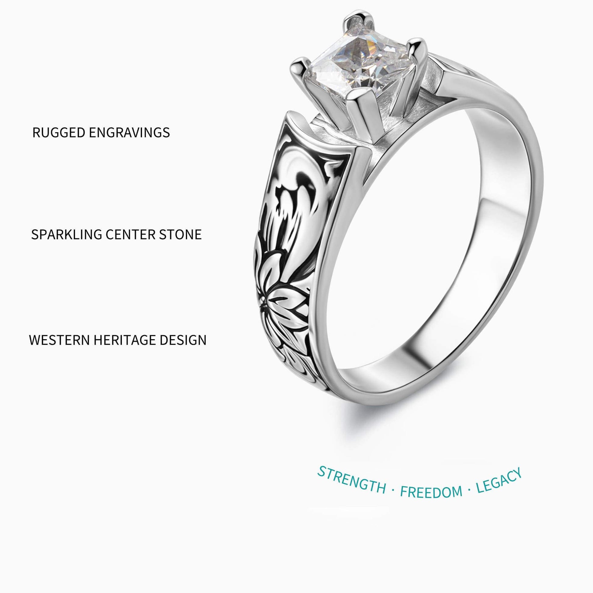 Women Flower Engraved Square Diamond Western Engagement Ring